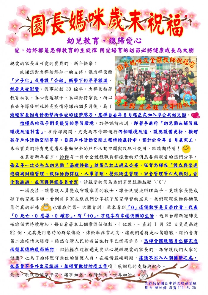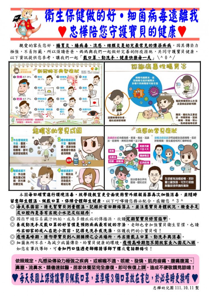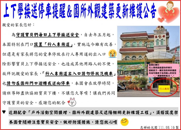 上下學接送停車提醒&園所外觀建築更新維護公告