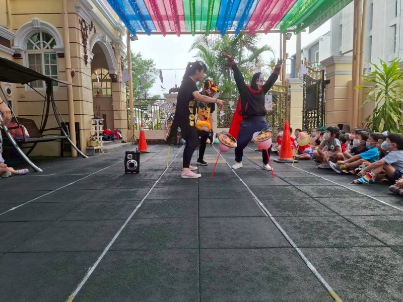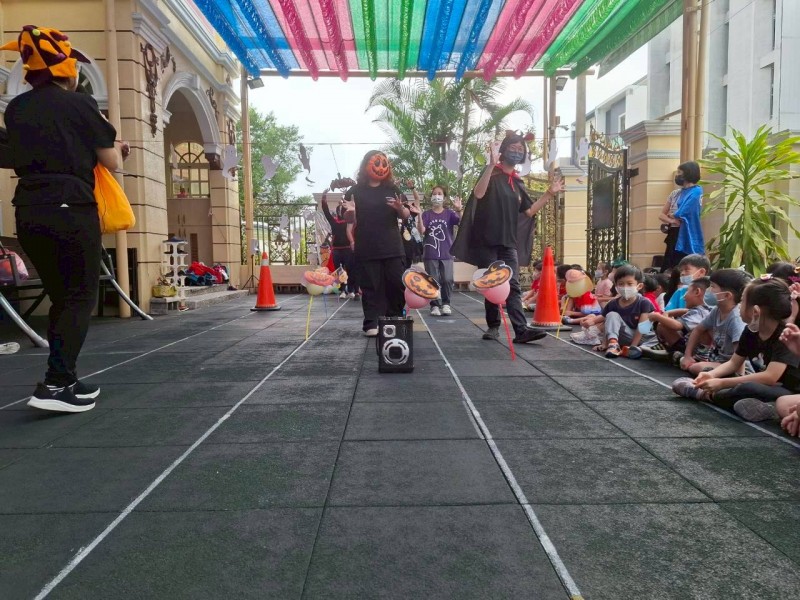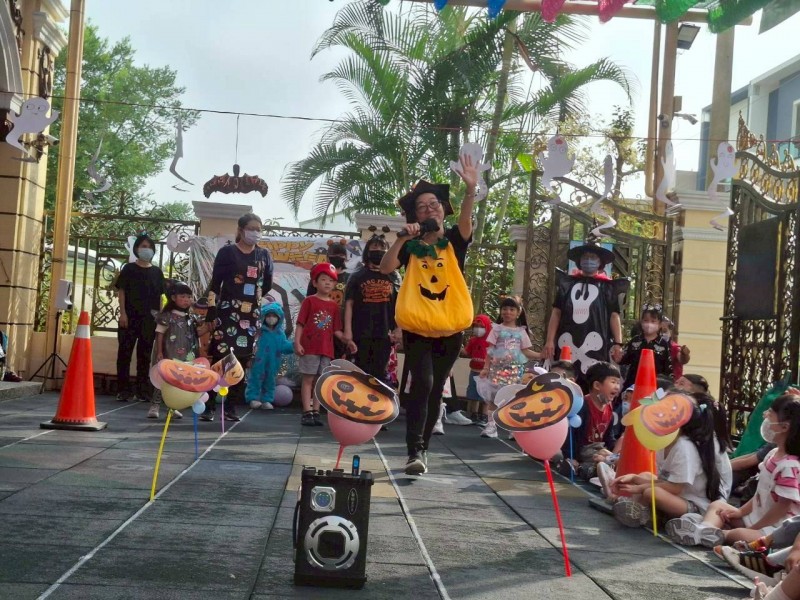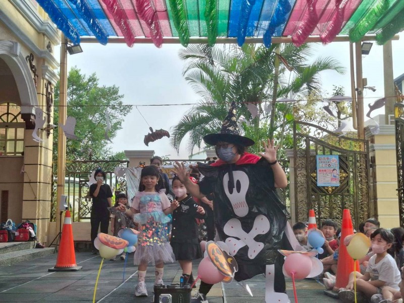 基於以上原因,我們以不讓孩子失望的前提下,利用晨間活動介紹萬聖節的由來,並帶領萬聖節趣味遊戲,搭配老師用心的裝扮走秀(孩子不須裝扮),同樣能達到萬聖節活動的娛樂效果,孩子們看著老師們的搞笑演出,比外出踩街討糖還開心唷!也感謝家長給予我們的回饋,對於孩子不須裝扮的舉辦方式亦舉雙手贊成,讓我們可以